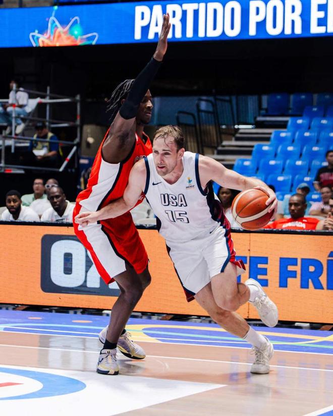 在这场季军比赛中,美国男篮对阵加拿大男篮,双方也在最后一场比赛中对阵季军。当时,美国男篮以84-80险胜加拿大男篮,获得第三名。第一节开始,美国男篮落后3-8,美国男篮内外迅速打出12-4,攻势超过3分。随后,美国男篮继续压制和扩大23-15的优势,德恩卡特三分追分。第一节结束,美国男篮以23-18领先加拿大男篮。