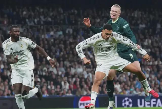 第一轮欧冠1/8决赛在伯纳乌,哈兰德首发0射门,目睹球队0-3输球,基本没有晋级的机会。上个赛季,皇马在欧冠淘汰赛附加赛中被杀,更是惨不忍睹。