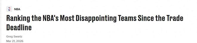 当常规赛进入冲刺阶段时,美国媒体《bleacherreport》自交易截止日期以来,NBA5支最令人失望的球队被选中,其中勇士队被选中,火箭排名第三。