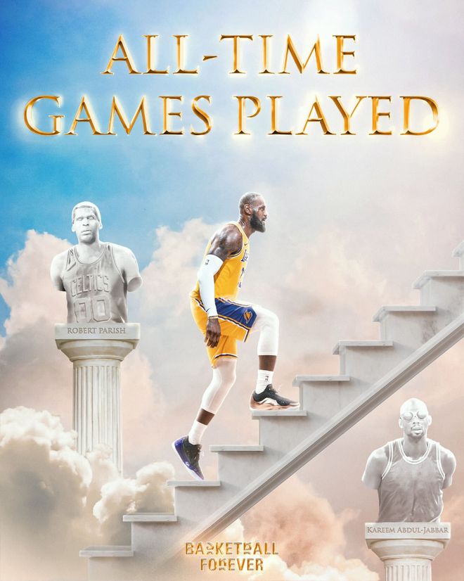勒布朗接近新的历史第一纪录。目前勒布朗历史上有1225场比赛,距离贾巴尔只有4场比赛。勒布朗本赛季可以在历史上出场,41岁的他再次获得荣誉。