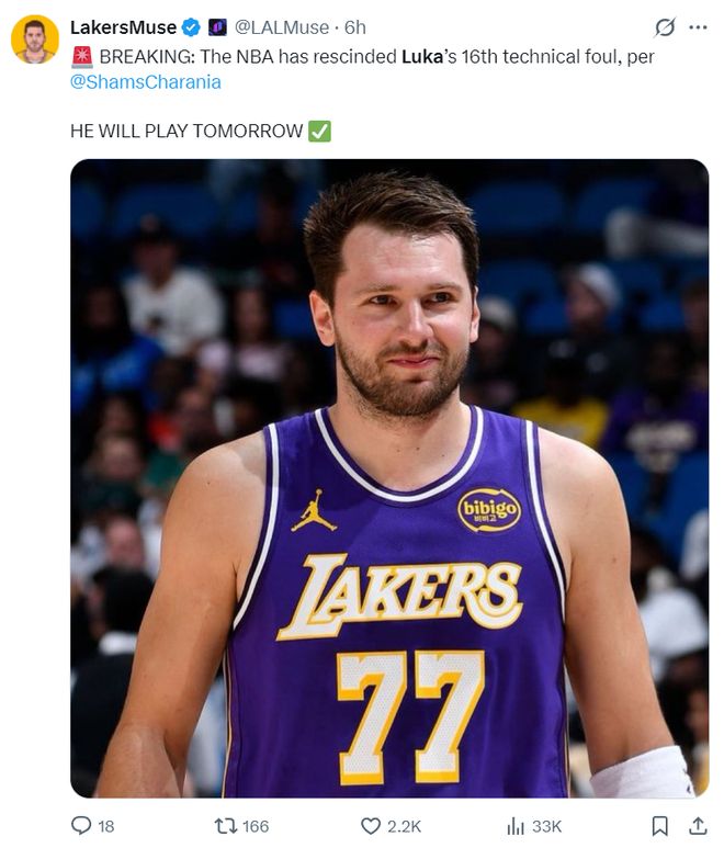 东契奇技术犯规被取消,湖人迎来利好消息!